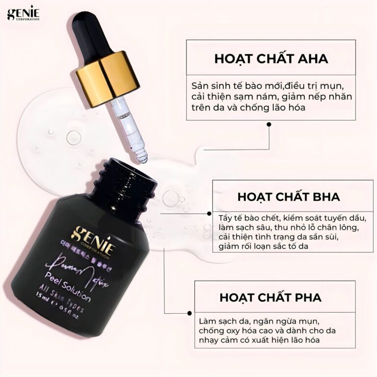 REVIEW PEEL SOLUTION GENIE, SAU 2 THรNG HIแปU QUแบข NHฦฏ THแบพ NรO? Peel solution Genie vแปi sแปฑ โgรณp mแบทtโ cรดng thแปฉc tแปi ฦฐu ฤแปc ฤรกo (chแปฉa 25% AHA, 0,5% BHA, 10% PHA), giรบp loแบกi bแป tแบฟ bร o chแบฟt nแบฑm sรขu trong lแป chรขn lรดng, cแบฃi thiแปn tรฌnh trแบกng da xแปn mร u, thiแบฟu sแปฉc sแปng, ฤแปng…